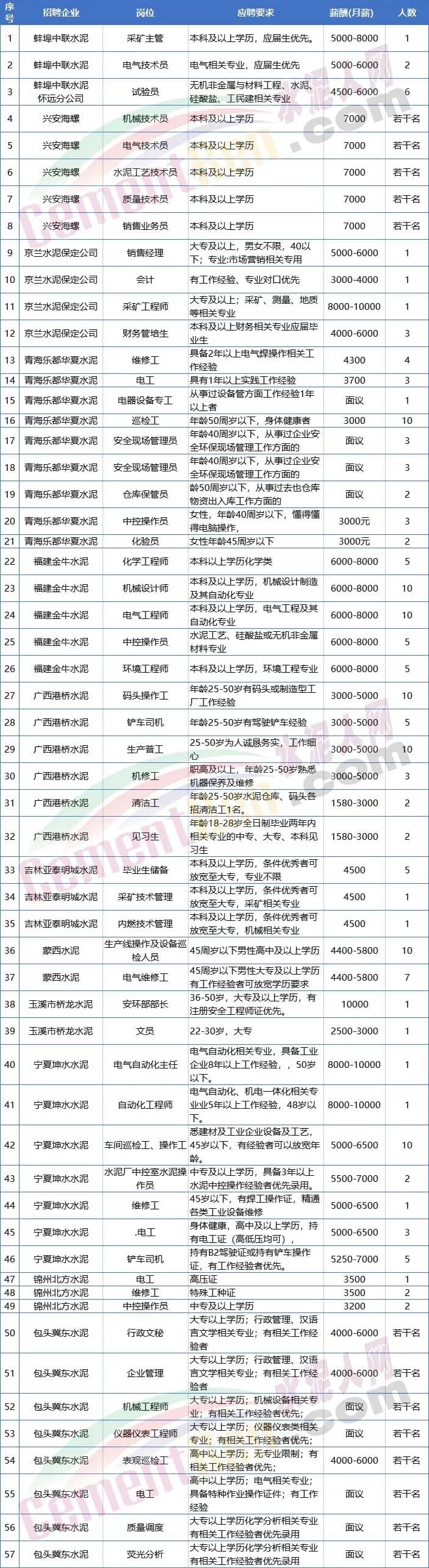 中聯(lián)、北方、海螺、冀東、亞泰等社招“搶人”