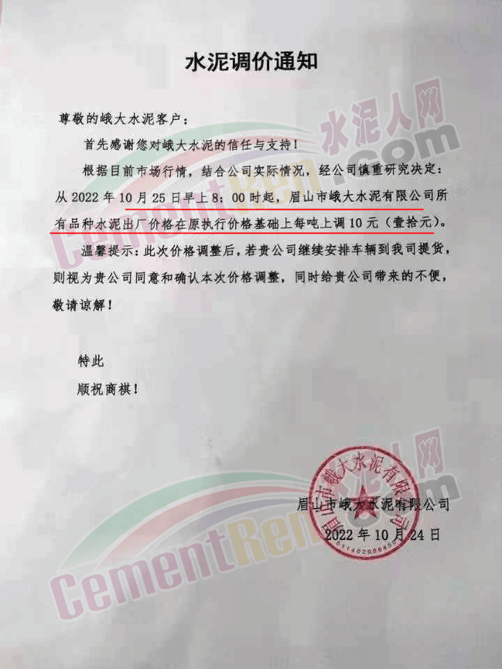 四川眉山多家水泥企業(yè)通知上調(diào)水泥價(jià)格10元/噸,經(jīng)銷(xiāo)商表示,這是“溫柔一刀”。