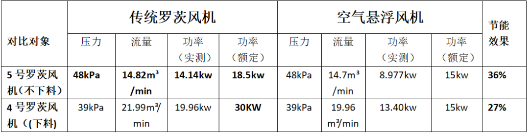 企業(yè)相關(guān)負(fù)責(zé)人對(duì)水泥人網(wǎng)表示,原先使用的4號(hào)庫(kù)和5號(hào)庫(kù)這兩臺(tái)羅茨風(fēng)機(jī)存在嚴(yán)重的壓力不穩(wěn)定、效率低、電耗高、運(yùn)行時(shí)噪音過高、維護(hù)費(fèi)用高等問題,在技改成濰坊富源的空氣懸浮風(fēng)機(jī)后,在節(jié)能降本領(lǐng)域?qū)崿F(xiàn)了巨大突破。其中,4號(hào)風(fēng)機(jī)節(jié)能效果達(dá)到27%,5號(hào)風(fēng)機(jī)節(jié)能效果達(dá)到36%。