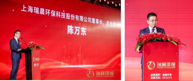 上海市嘉定區(qū)副區(qū)長李峰先生、東方證券股份有限公司黨委副書記、總裁魯偉銘先生分別致辭,他們對瑞晨環(huán)保上市表示衷心的祝賀,并對瑞晨環(huán)保的未來發(fā)展提出了新的期待。
