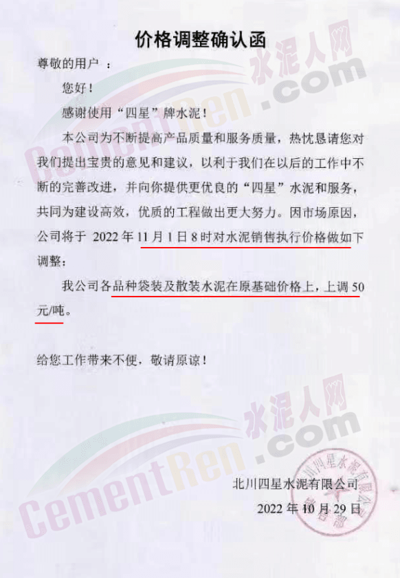據(jù)了解,本輪調(diào)價(jià)是從10月30日起,包括粉磨站在內(nèi)的多家水泥企業(yè)通知上調(diào)水泥價(jià)格50元/噸,熟料價(jià)格同步上調(diào)30元/噸。