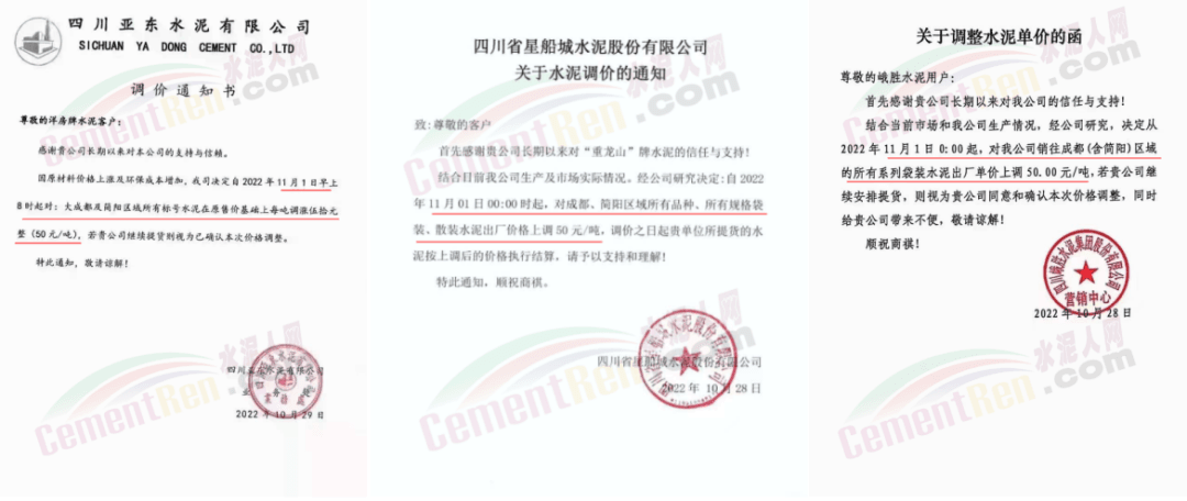本輪發(fā)布調(diào)價(jià)通知企業(yè)包括亞東水泥、星船城水泥、峨勝水泥、紅獅水泥以及中建材旗下西南水泥(新)西昌營銷中心、成都營銷中心、廣南營銷中心、樂雅營銷中心、德綿營銷中心等。企業(yè)調(diào)價(jià)時(shí)間分別為10月30日、31日和11月1日。這也意味著這一輪調(diào)價(jià)將一直延續(xù)到11月份。