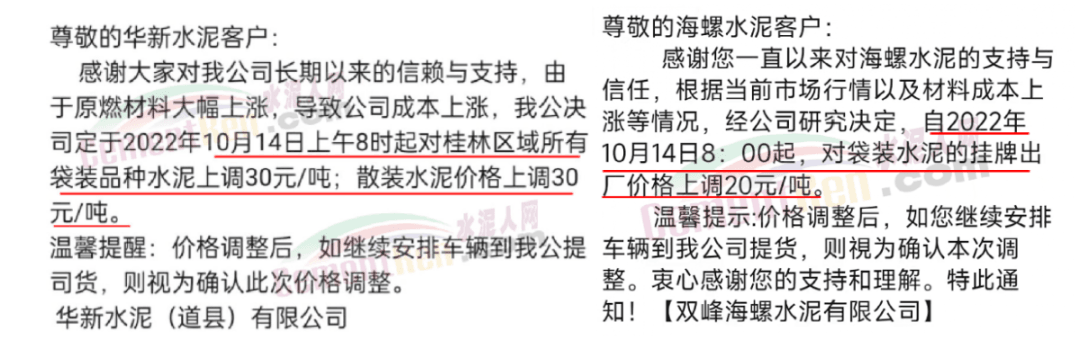 廣西華潤、海螺、南方、紅獅等多家企業(yè)通知上調(diào)水泥價(jià)格30元/噸