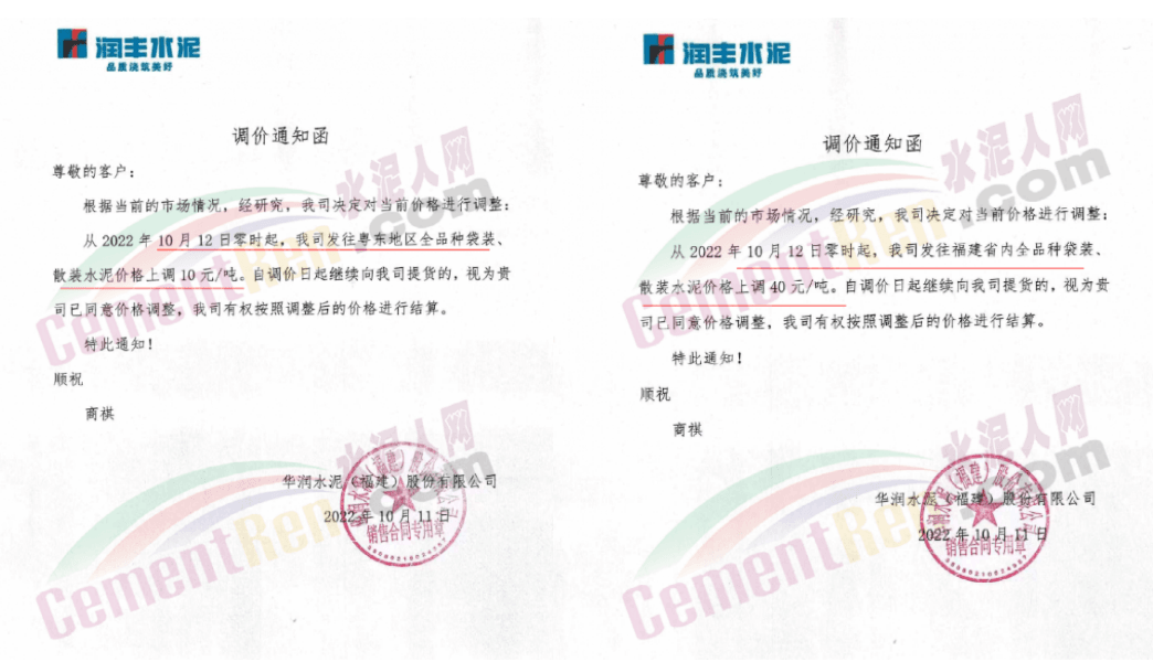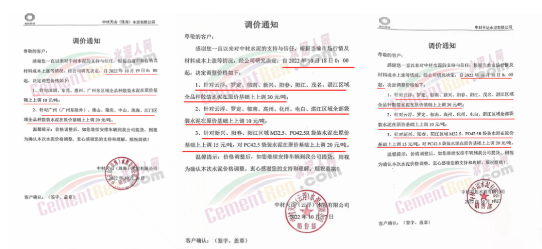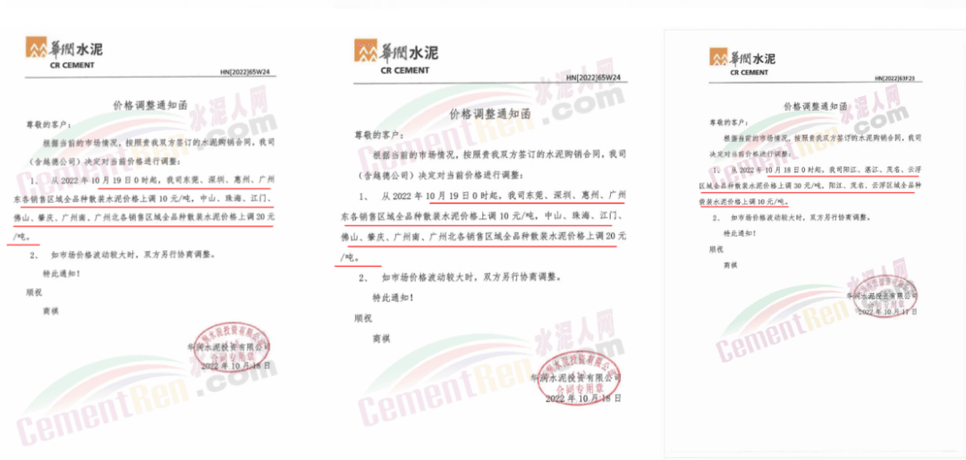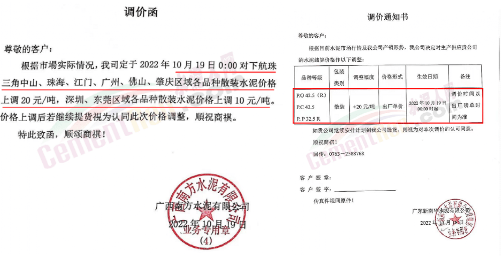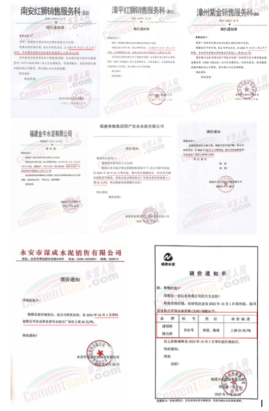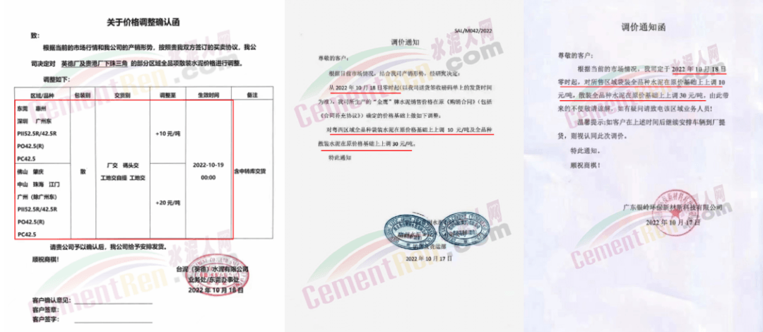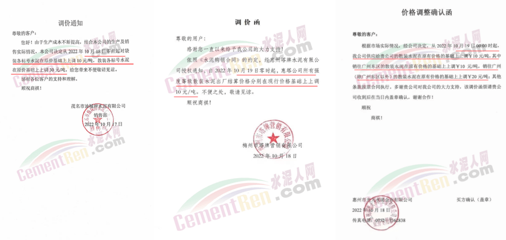 10月19日前后,珠三角區(qū)域海螺水泥、中材天山、中材亨達(dá)、華潤水泥、臺泥水泥、塔牌水泥、光大水泥、青洲水泥等水泥企業(yè)通知上調(diào)水泥價(jià)格10-30元/噸,下游商混企業(yè)紛紛跟進(jìn)。
