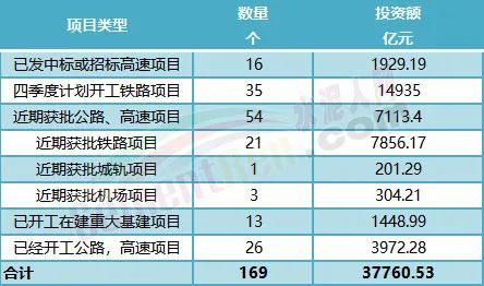 近期獲批公路、高速項(xiàng)目共54個(gè),總投資達(dá)7113.4億元;鐵路項(xiàng)目21項(xiàng),合計(jì)投資7856.17億元。