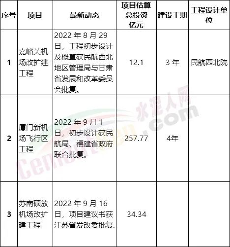 近期獲批機(jī)場(chǎng)項(xiàng)目3個(gè)
