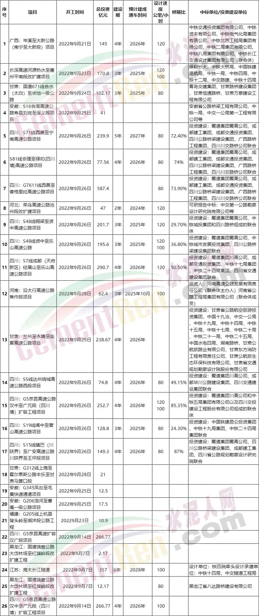 據(jù)水泥人網(wǎng)不完全統(tǒng)計(jì),近期已發(fā)中標(biāo)或招標(biāo)信息的16條重點(diǎn)高速總投資1929.19億元;