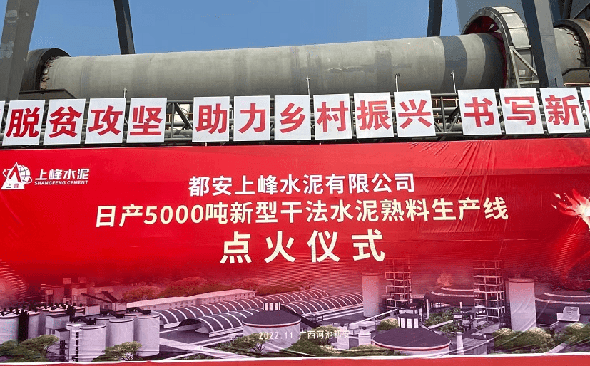 11月6日,位于廣西壯族自治區(qū)河池市都安瑤族自治縣都安臨港工業(yè)區(qū)臨港扶貧產(chǎn)業(yè)園的都安上峰水泥一條5000t/d新型干法熟料生產(chǎn)線舉行點火儀式。該項目為都安上峰在河池規(guī)劃的第一期,配套水泥粉磨站、余熱發(fā)電、礦山工程、碼頭工程等,預計年產(chǎn)熟料155萬噸、年產(chǎn)水泥200萬噸。