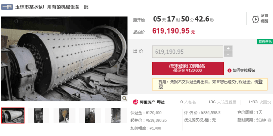 廣西壯族自治區(qū)興業(yè)縣人民法院發(fā)布《拍賣公告》稱,將于2022年11月20日10時(shí)至2022年11月21日10時(shí)在淘寶網(wǎng)司法拍賣網(wǎng)絡(luò)平臺(tái)上對(duì)玉林市某水泥廠所有的機(jī)械設(shè)備一批,進(jìn)行公開(kāi)拍賣。