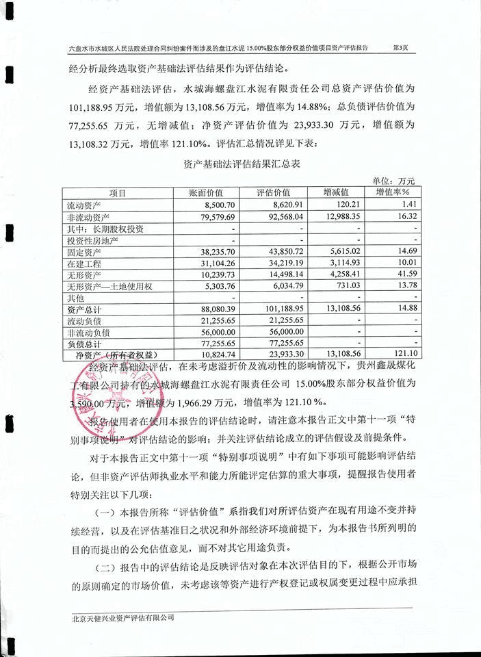 6 水城海螺盤(pán)江水泥有限責(zé)任公司15%股權(quán)