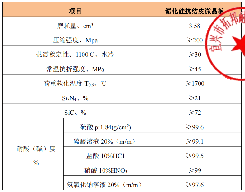從以上數(shù)據(jù)可以看出,氮化硅微晶板具有高抗磨、高強度、耐侵蝕、抗結皮等性能,可廣泛使用于水泥窯煙室、五級下料管等易結皮、須耐磨部位。