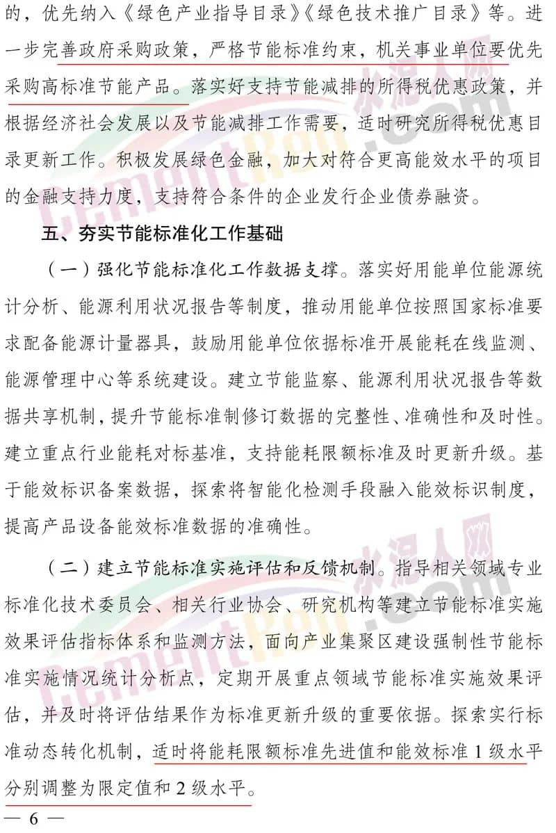 加強綜合性政策支持。對行業(yè)主要產(chǎn)品能效水平普遍優(yōu)于能耗限額標準先進值或主要設備能效普遍優(yōu)于能效標準1級水平的,優(yōu)先納入《綠色產(chǎn)業(yè)指導目錄》《綠色技術推廣目錄》等。進一步完善政府采購政策,嚴格節(jié)能標準約束,機關事業(yè)單位要優(yōu)先采購高標準節(jié)能產(chǎn)品。
