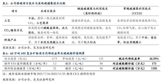 優(yōu)勢二:低成本捕碳&碳價值彈性85.69%,產(chǎn)品替代水泥熟料&礦粉節(jié)約水泥企業(yè)成本。