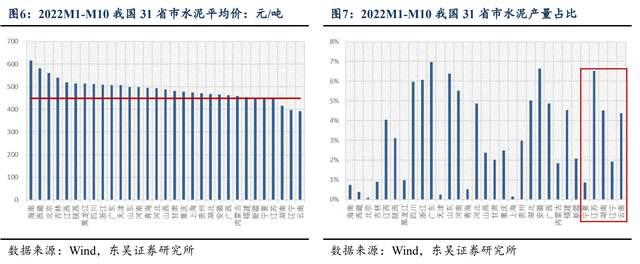 2022年1-10月,河南水泥平均價達497.98元/噸,低于河南水泥均價10%的區(qū)域主要為寧夏、江蘇、湖南、遼寧、云南,其產(chǎn)量占全國產(chǎn)量比重為18.22%。