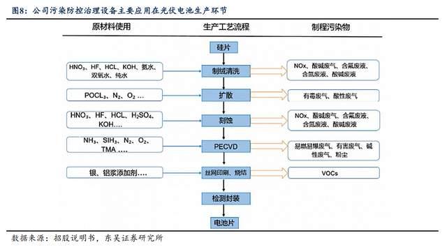 公司生產(chǎn)的光伏制程污染防控設備在嚴控產(chǎn)品質量、生產(chǎn)安全和污染控制方面起到重要作用,需求剛性快速擴張。