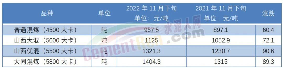 與此同時,煤炭價格卻一直處于高位。2022年1月下旬4500~5800大卡報價在957.5~1404.3元/噸。上年同期報價在897-1315元/噸,差價60.4-89.3元/噸。