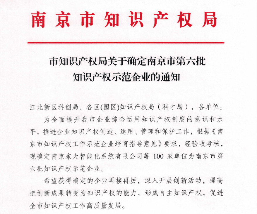 南京市知識產(chǎn)權(quán)示范企業(yè)