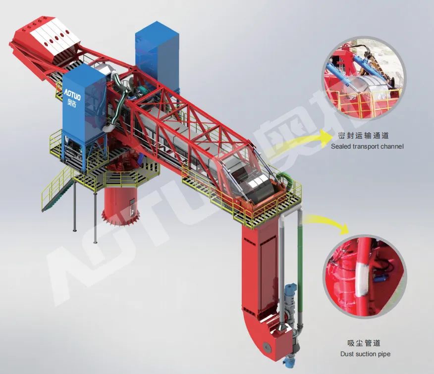 螺旋取料機(jī)內(nèi)置吸塵、抑塵系統(tǒng),在取料過程中可快速收集由物料流動(dòng)、料層坍塌引起的揚(yáng)塵。后續(xù)提升輸送的皮帶機(jī)內(nèi)部全密封,在皮帶機(jī)尾部設(shè)有袋式收塵器,密封通道內(nèi)產(chǎn)生微負(fù)壓,解決了粉塵飛揚(yáng)等環(huán)保問題,徹底解決了抓斗式卸船開放式作業(yè)的撒料、漏料、冒灰、揚(yáng)塵等難題,是傳統(tǒng)抓斗式卸船機(jī)的理想取代產(chǎn)品。