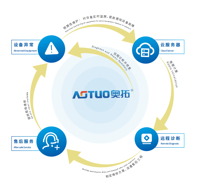 通過采集設(shè)備動(dòng)態(tài)信息、檢測機(jī)組運(yùn)作狀態(tài)、分析運(yùn)行數(shù)據(jù)和診斷設(shè)備故障,不僅提高了售后維護(hù)效率及設(shè)備運(yùn)行可靠性,保障了維修質(zhì)量,降低了設(shè)備故障停機(jī)時(shí)間,延長了機(jī)組運(yùn)行周期,實(shí)現(xiàn)了設(shè)備的高效、穩(wěn)定、連續(xù)使用,形成完整的售后維護(hù)的預(yù)知維修集成化平臺(tái)管理”。