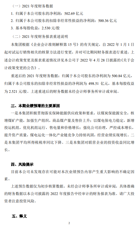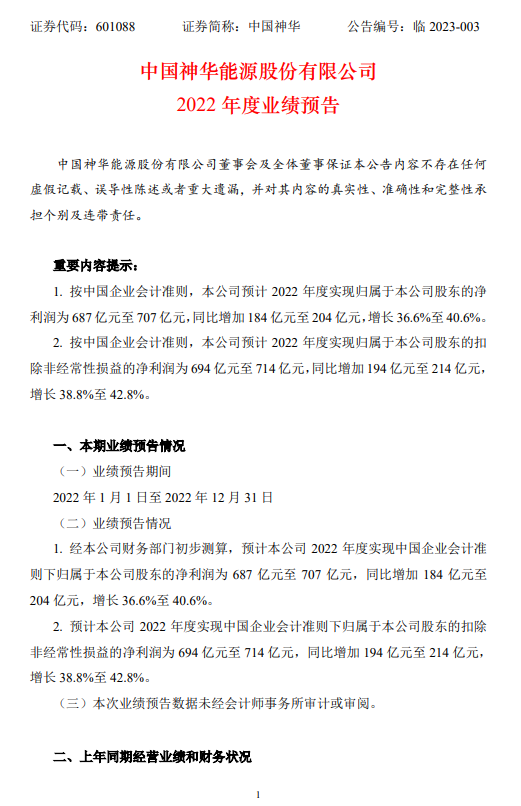 日前,“煤炭一哥”中國(guó)神華披露2022年度業(yè)績(jī)預(yù)告,預(yù)計(jì)2022年實(shí)現(xiàn)歸母凈利潤(rùn)687億元至707億元,同比增長(zhǎng)36.6%至40.6%。若按歸母凈利潤(rùn)上限計(jì)算,“煤炭一哥”中國(guó)神華預(yù)計(jì)2022年度日凈賺1.94億元。