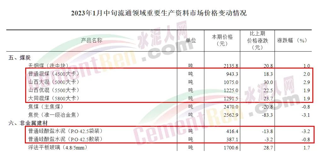 按照國(guó)家統(tǒng)計(jì)局最近發(fā)布的2023年1月中旬流通領(lǐng)域5500大卡煤炭報(bào)價(jià)1225元/噸和是P.O42.5散裝水泥報(bào)價(jià)387.1元/噸計(jì)算,煤炭?jī)r(jià)格是水泥價(jià)格的3.16倍。煤炭作為水泥生產(chǎn)主要成本支出長(zhǎng)期以來(lái)一直在扮演為煤炭“打工”的角色。