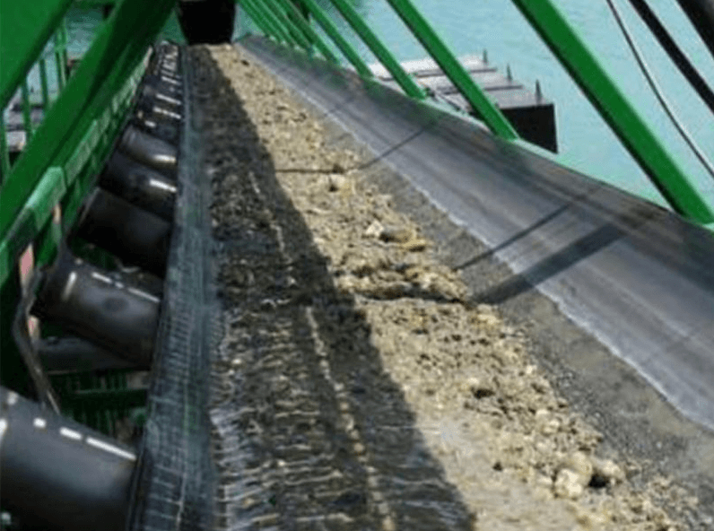皮帶依靠托輥的支撐和頭尾輪的張緊形成了槽型,從而實現(xiàn)粉狀物料的運輸。