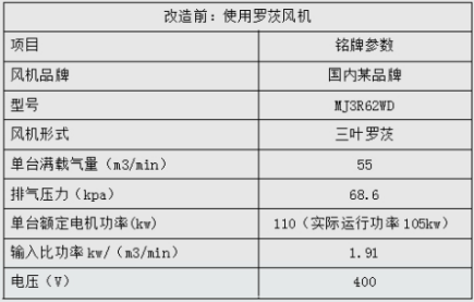 改造前風(fēng)機(jī)參數(shù)