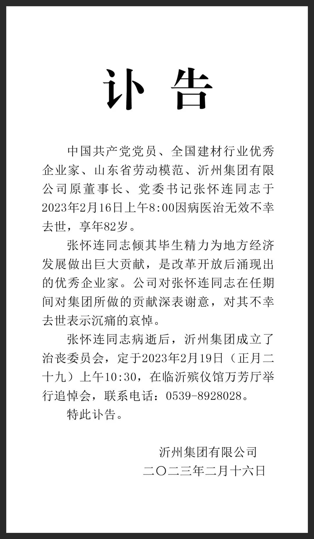 訃告!沂州水泥集團原董事長去世!