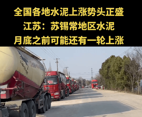 長(zhǎng)三角區(qū)域經(jīng)銷(xiāo)商通知稱(chēng),全國(guó)各地水泥上漲勢(shì)頭正盛,江蘇蘇錫常地區(qū)水泥月底前還有一輪上漲。