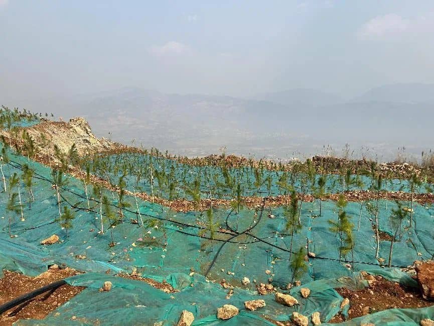 截至2023年2月14日,金江水泥累計(jì)修復(fù)面積83440.21㎡,完成率74.23%,投入資金497.05萬(wàn)元。累計(jì)完成平臺(tái)覆土約23100噸,邊坡坡面鋪設(shè)爬藤類(lèi)植物攀爬網(wǎng)約43273.71㎡,安裝輸水管道及噴淋系統(tǒng)約31676.7㎡,種植草籽及草本類(lèi)花卉種子約29676.7㎡,種植邊坡坡面攀爬藤3000株,平臺(tái)種植喬木3500棵。