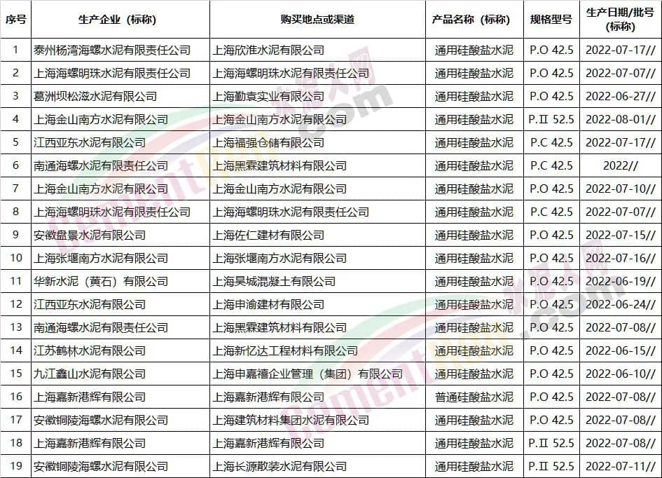 從上述各省市地區(qū)公布的抽檢結(jié)果可見,抽檢產(chǎn)品多為生產(chǎn)領(lǐng)域企業(yè)已檢合格的成品水泥。流通領(lǐng)域抽檢也多為有標稱生產(chǎn)企業(yè)的,且擁有相應(yīng)合格證明的企業(yè)。