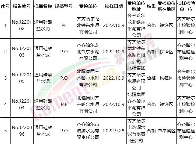 黑龍江省齊齊哈爾市市場監(jiān)管局抽查水泥產(chǎn)品5批次,全部合格。
