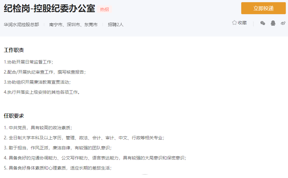 紀檢崗招聘兩人,要求中共黨員,具有較高的政治素質(zhì);全日制大學(xué)本科及以上學(xué)歷,管理、政法、會計、審計、中文、行政等相關(guān)專業(yè)。