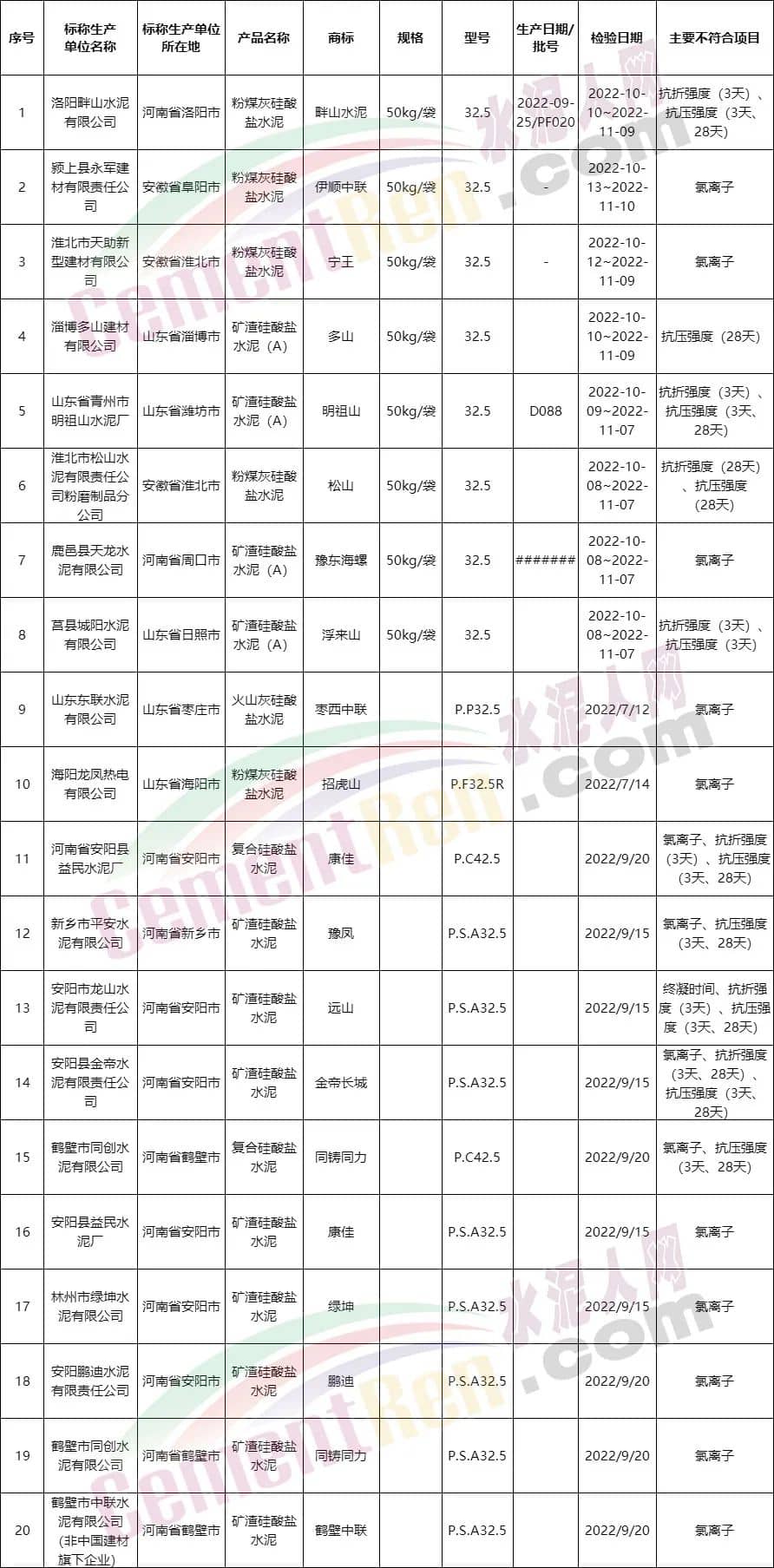 各省市地方監(jiān)督抽查21批次水泥質(zhì)量不合格,涉及強(qiáng)度和氯離子