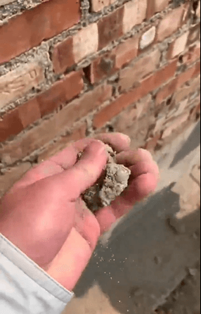 據(jù)了解,該消費者于3月初向當?shù)匾唤?jīng)銷商購買了10噸水泥蓋房子。房子即將封頂了,才發(fā)現(xiàn)水泥不凝固,目前還剩約7噸水泥。從消費者提供的視頻資料可見,水泥塊一捏即碎。