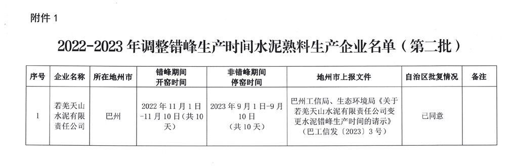 寧夏回族自治區(qū)要求全區(qū)所有水泥熟料生產(chǎn)企業(yè)2022年11月1日~2023年3月10日期間錯峰生產(chǎn)130天,時限內(nèi)未完成錯峰生產(chǎn)的天數(shù)需在2023年6月底前補足。