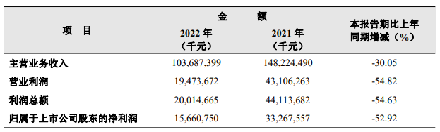 從海螺水泥此前發(fā)布的2022年年報(bào)可見,2022年公司營(yíng)業(yè)收入1320.22億元,同比下降21.4%;歸母凈利潤(rùn)156.61億元,同比下降52.92%。盡管營(yíng)收和利潤(rùn)雙雙下滑,但是營(yíng)收下滑幅度相對(duì)較小,而利潤(rùn)卻直接“腰斬”。