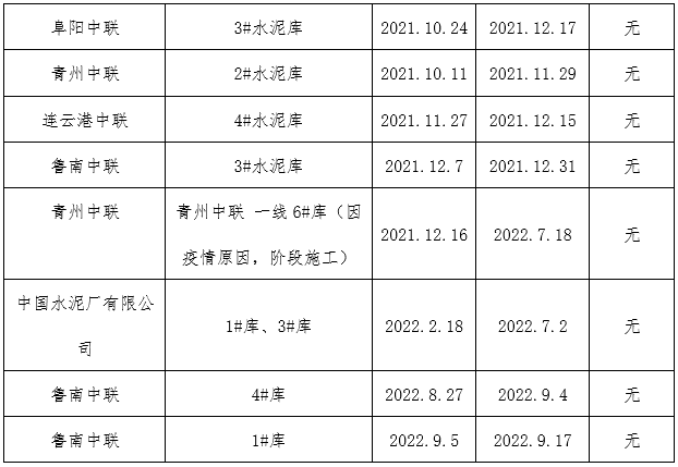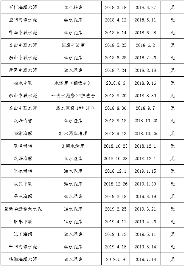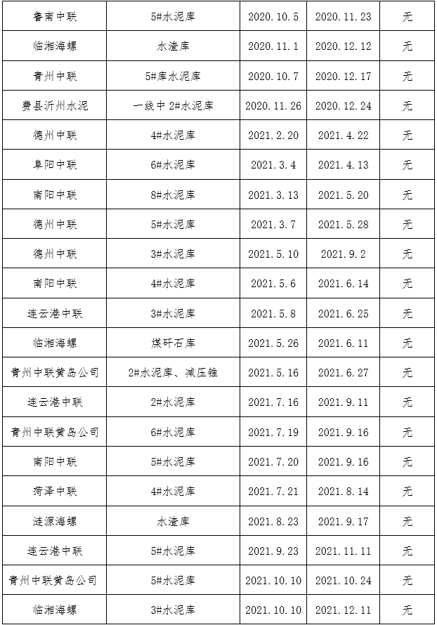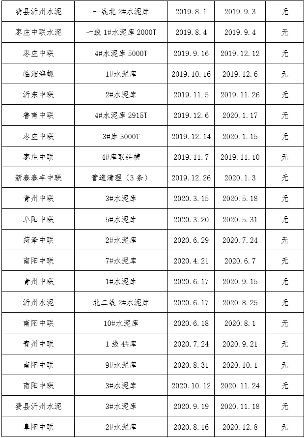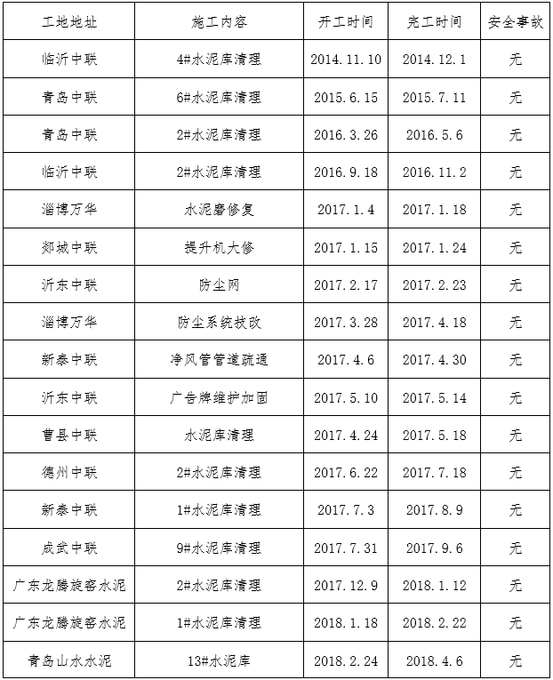 鑫盛利水泥倉智能機械清理有限公司業(yè)績表