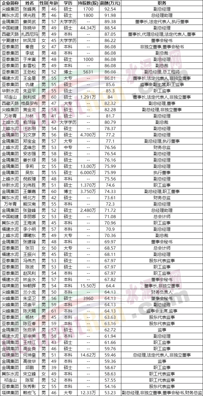 據(jù)了解,部分水泥集團(tuán)企業(yè)已明確年齡在58歲的高管需退居二線,從上市公司公布的數(shù)據(jù)也可見出生于1970-1980年間的管理層為目前行業(yè)的主力,且多為本科及以上學(xué)歷。