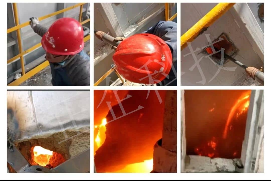 據(jù)悉,這兩家水泥企業(yè)使用的熱能膨脹清堵技術(shù)由山東正企工礦機電科技有限公司(以下簡稱“山東正企”)自主研發(fā)生產(chǎn)。據(jù)山東正企總經(jīng)理許貫民介紹,熱能膨脹清堵技術(shù)可用于分解爐頂部的結(jié)皮清理,窯尾篦冷機“雪人”的在線清除,燃燒器頭部出現(xiàn)的結(jié)焦、預(yù)熱器管道結(jié)皮及管道堵塞、對料庫的拱形、爐璧形、橋形、漏斗形板結(jié)能夠有效的快速清理。山東正企熱能膨脹清堵技術(shù)針對水泥庫電石渣廢料產(chǎn)生的乙炔氣體爆炸問題能夠安全的進行料庫清理,這項技術(shù)的應(yīng)用屬國內(nèi)首創(chuàng)。該技術(shù)具有超強的耐高溫特性,可在設(shè)備內(nèi)部1200°的高溫下實施在線清除,替代了水槍等危險的作業(yè)工具,不需要停機冷卻就能快速處理結(jié)皮和堵料。