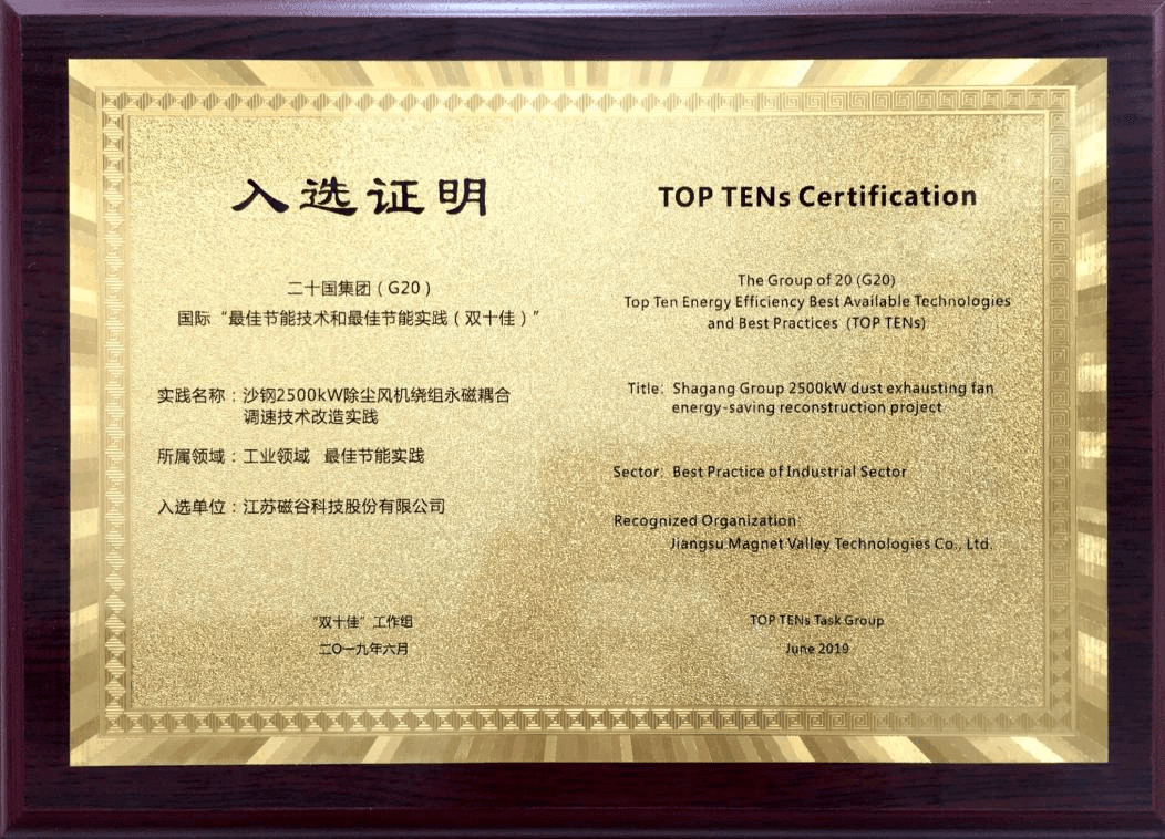 2、入選G20“國際雙十佳”(節(jié)能領域最高榮譽),第一屆2014年,第二屆2019年,入選中國企業(yè)僅三家;