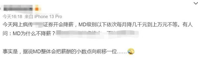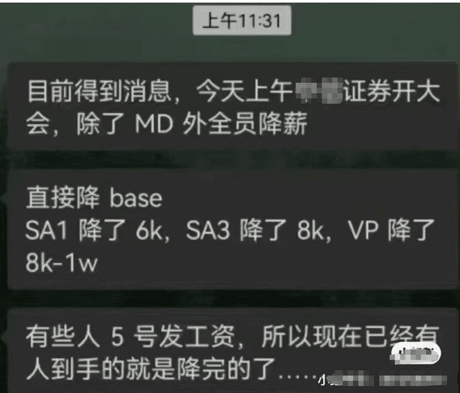 近日,券商“一哥”中信證券傳出降薪消息。根據(jù)網(wǎng)上截圖,該中字頭券商的投行中低職級(jí)員工的每月固定薪酬或?qū)⑵战?,根?jù)職級(jí)每月固薪的下降5000元至10000元之間。