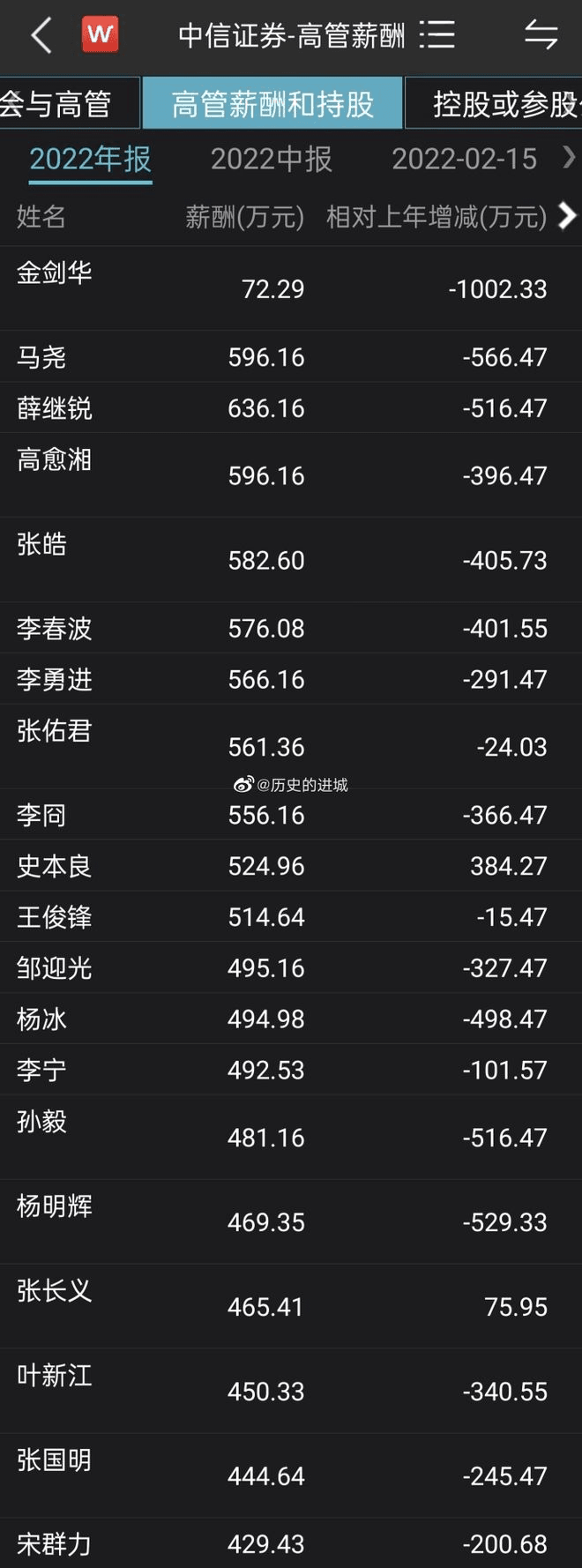 同期,中金公司高管也出現(xiàn)大幅降薪,2022年董監(jiān)高年度薪酬總額為4126.20萬(wàn)元,縮水5315.40萬(wàn)元,較2021年9441.6萬(wàn)元同比下滑56.30%,成為披露數(shù)據(jù)中降幅最大的券商。