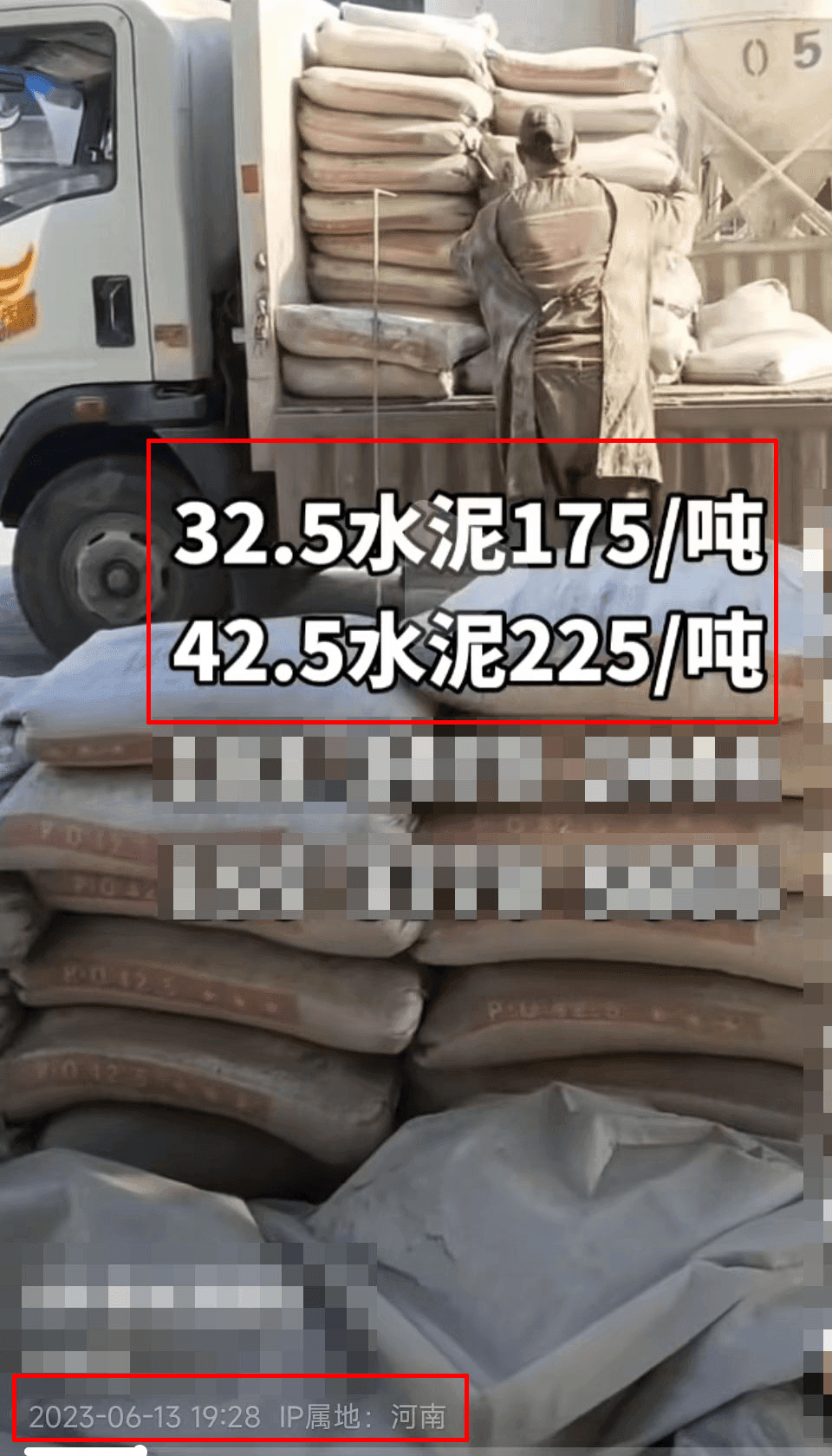6月13日河南新鄉(xiāng)一經(jīng)銷商32.5水泥報(bào)價(jià)175元/噸,42.5水泥報(bào)價(jià)225元/噸。