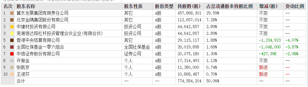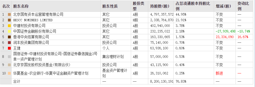 圖:金隅集團10大股東