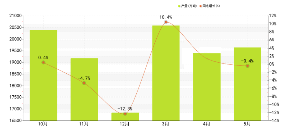 2022年10月-2023年5月份全國水泥產(chǎn)量統(tǒng)計