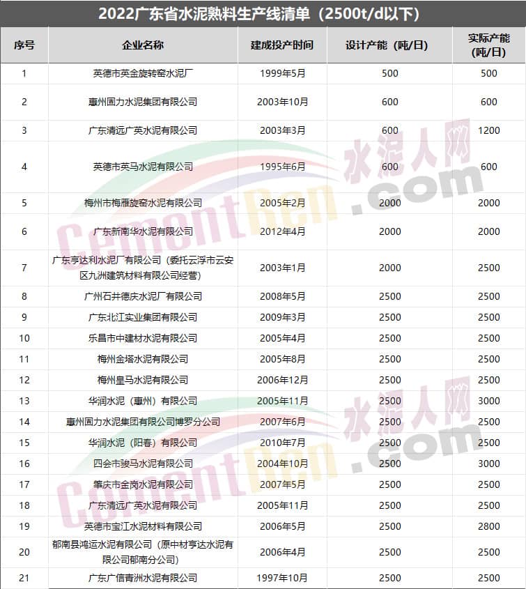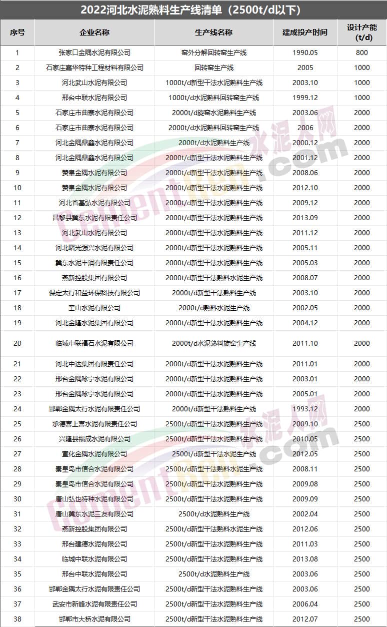 山東?。?/strong>2022年年底前,除特種水泥熟料和化工配套水泥熟料生產線外,2500噸/日以下的水泥熟料生產線已全部淘汰,2023年6月底前全部拆除的生產裝置。2500噸/日的水泥熟料生產線整合退出一半,其余2500噸/日水泥熟料生產線須確定產能置換方案。逾期未完成產能置換的水泥熟料生產線直接關停退出。