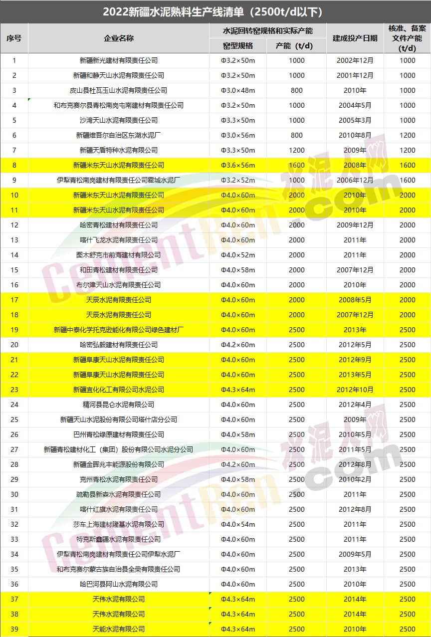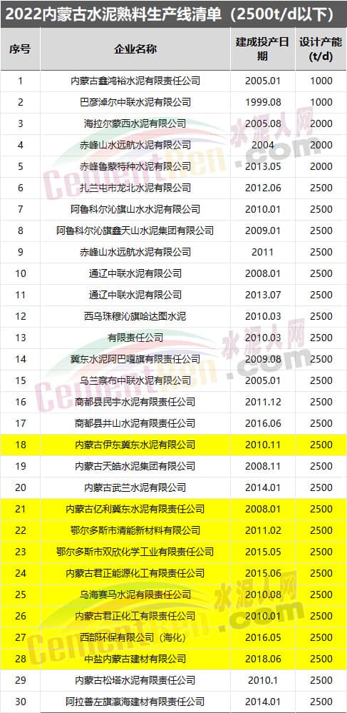 寧夏回族自治區(qū):《寧夏回族自治區(qū)能耗雙控產業(yè)結構調整指導目錄(試行)》要求,2023年淘汰2500噸/日以下水泥熟料生產線、JT窯、直徑3.2米以下水泥磨機(含礦粉磨機),化工配套水泥熟料生產線于2024年前淘汰;2025年前淘汰2500噸/日的水泥熟料生產線(化工配套水泥熟料生產線除外)。