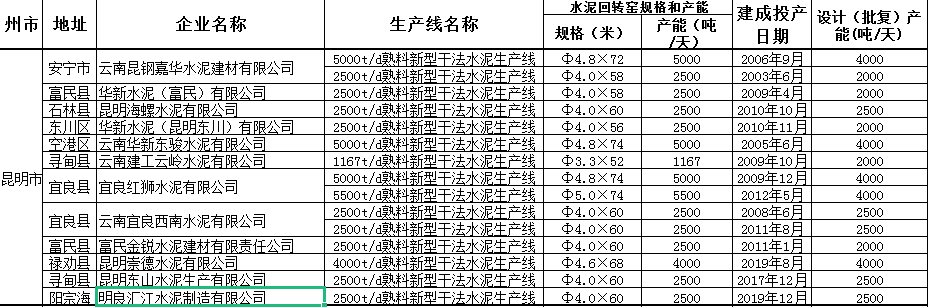 昆明地區(qū)水泥熟料企業(yè)數(shù)據(jù)(來(lái)自云南省工信廳)