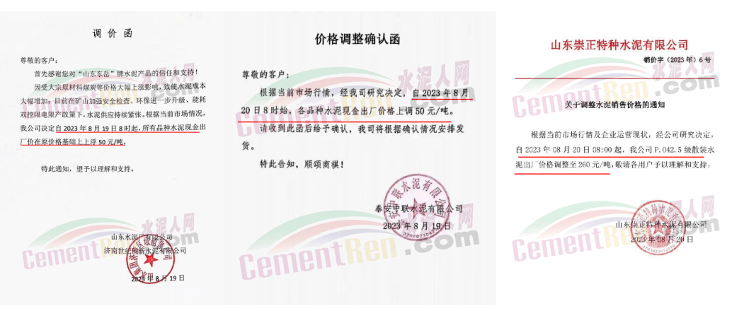 山東濟(jì)南山水水泥、泰安中聯(lián)水泥、淄博市崇正特種水泥等通知上調(diào)水泥價(jià)格50元/噸,調(diào)價(jià)后出廠報(bào)價(jià)260元/噸。